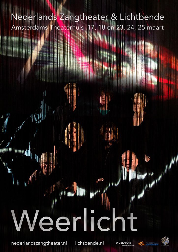 Weerlicht vervlecht klassieke en eigentijdse koorstukken, met als basis de muziek van Meredith Monk. Een meerstemmige en visuele verrassing met levendige projecties van Lichtbende. Weerlicht neemt je mee naar een verstilde wereld waar de idylle wordt verstoord door een ontwrichtende gebeurtenis. Beweging en zang in een totaal-enscenering van beeldende poëzie.