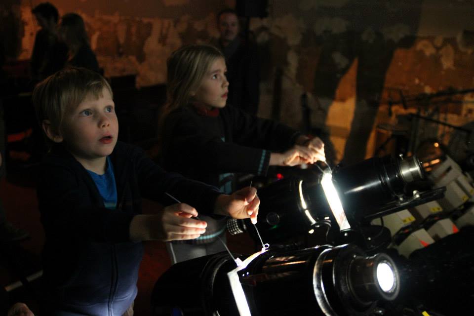 Lichtbende biedt diverse workshops voor kinderen waarbij de mogelijkheden van analoge projecties worden ontdekt. De kleine zelfgemaakte figuren worden bespeeld en met projectoren uitvergroot.